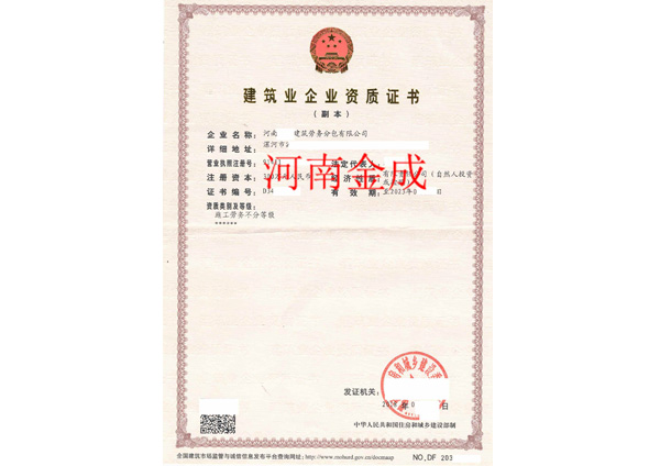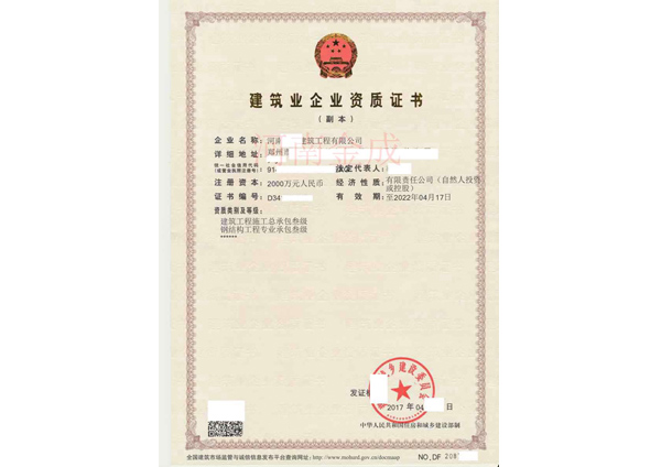 • 建筑業企業資質證書副